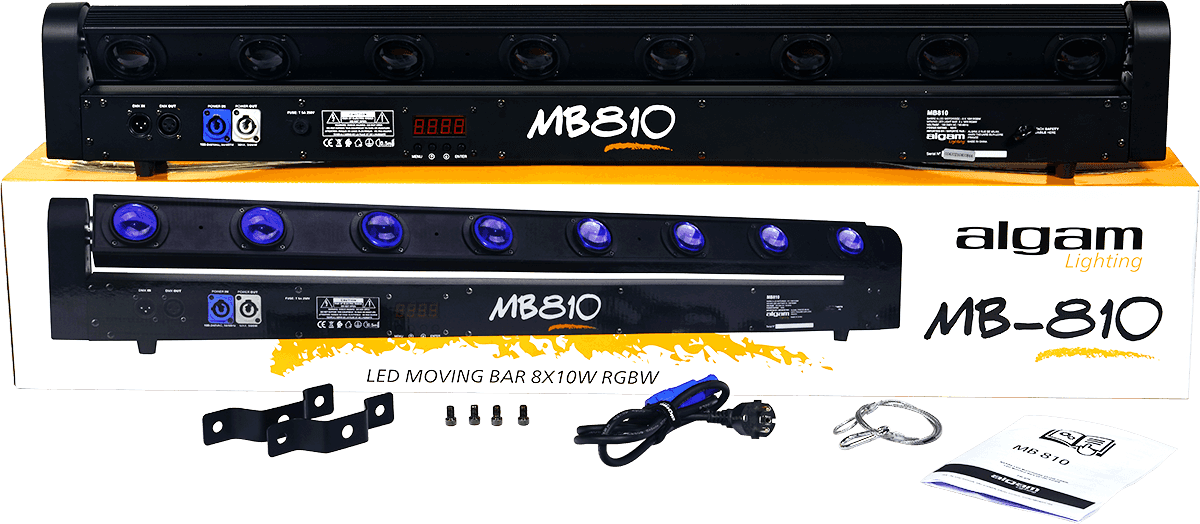 With its 8 LEDs, the MB810 bar offers powerful beams at an angle of 2.5 degrees in RGBW. Take advantage of 22 internal effects (sweep, strobe) and its 265-degree TILT angle.
