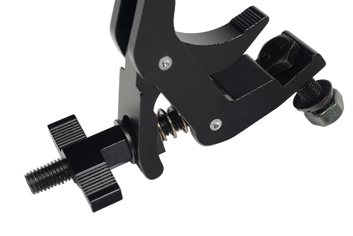 The CR-UNIVERSAL is a black-finished aluminium hook for structures, ideal for services and installations. Designed to hang on structures with sections from 42 to 60 mm, this versatile universal hook has a maximum load capacity of 100 kg.