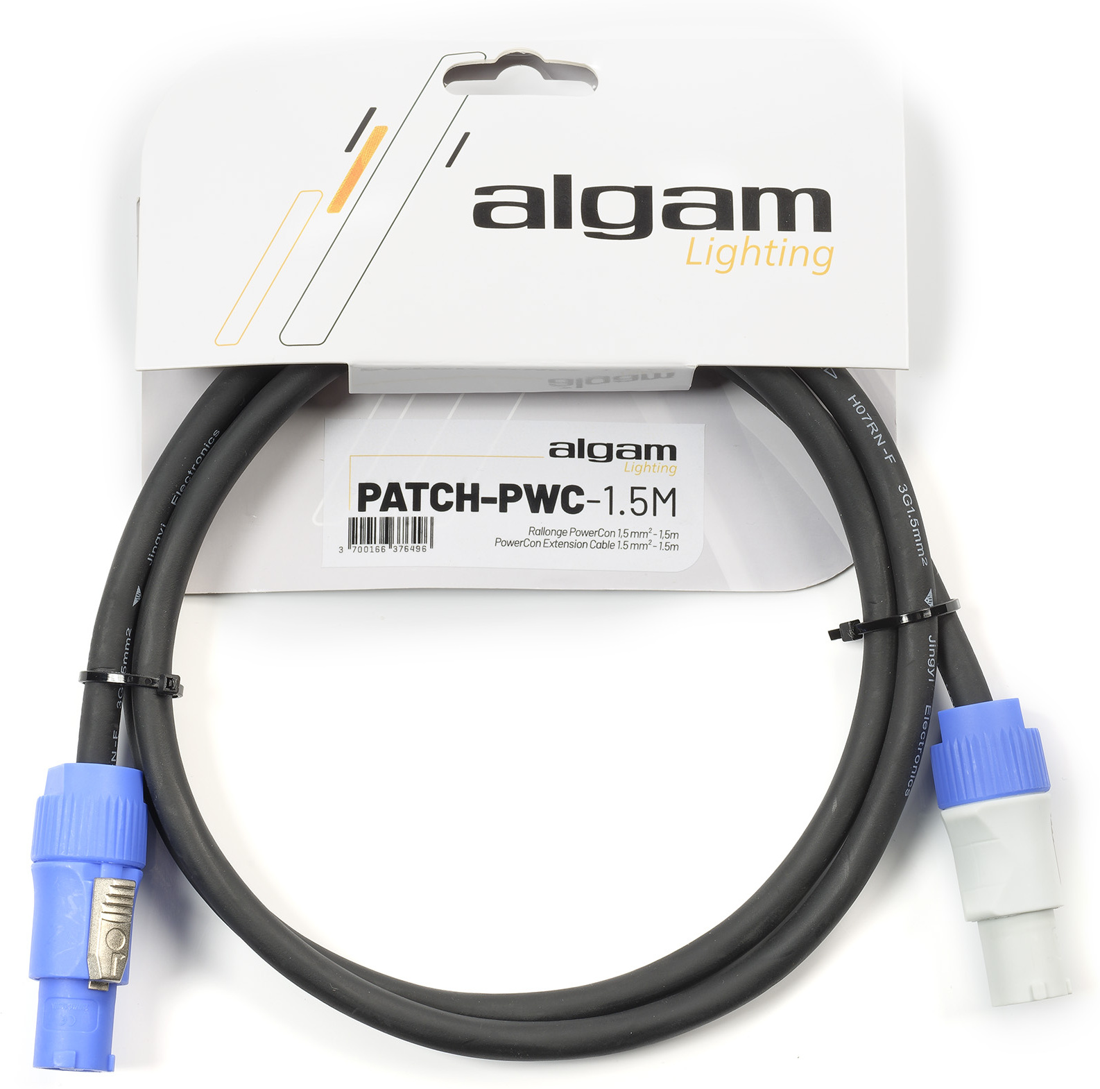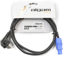The Algam Lighting 1.5m PowerCon power extension cable is designed to safely power professional lighting machines equipped with a locking PowerCon socket. It is ideal for daisy-chaining lighting machines equipped with PowerCon Power In and Power Out sockets.