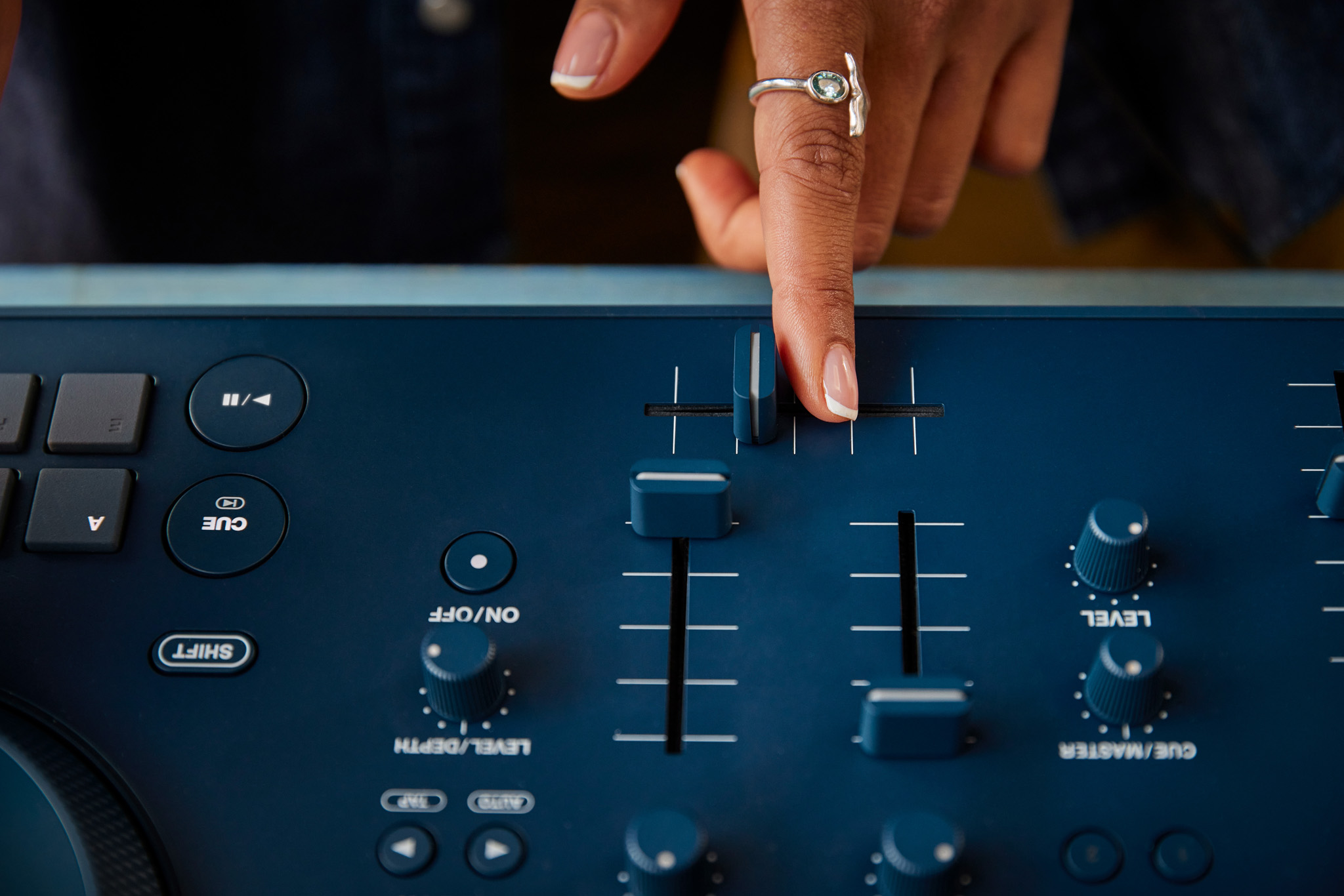 Los ocho pads de actuación por deck ofrecen funciones como hot cues, loops, slicer y roll. Son sensibles a la velocidad, por lo que puedes ajustar la intensidad de los efectos según tu toque, añadiendo una dimensión extra a tu interpretación.