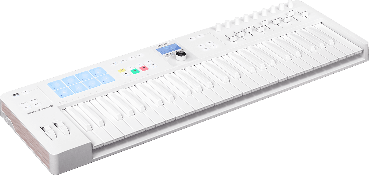 El KeyLab Essential 49 mk3 Alpine White es un teclado maestro de 49 teclas de Arturia.