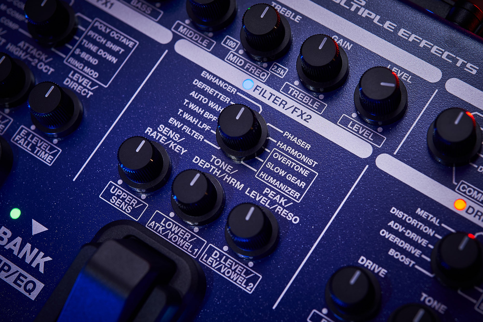 - Dedicated preamp section plus six simultaneous effect categories with multiple types to choose from
