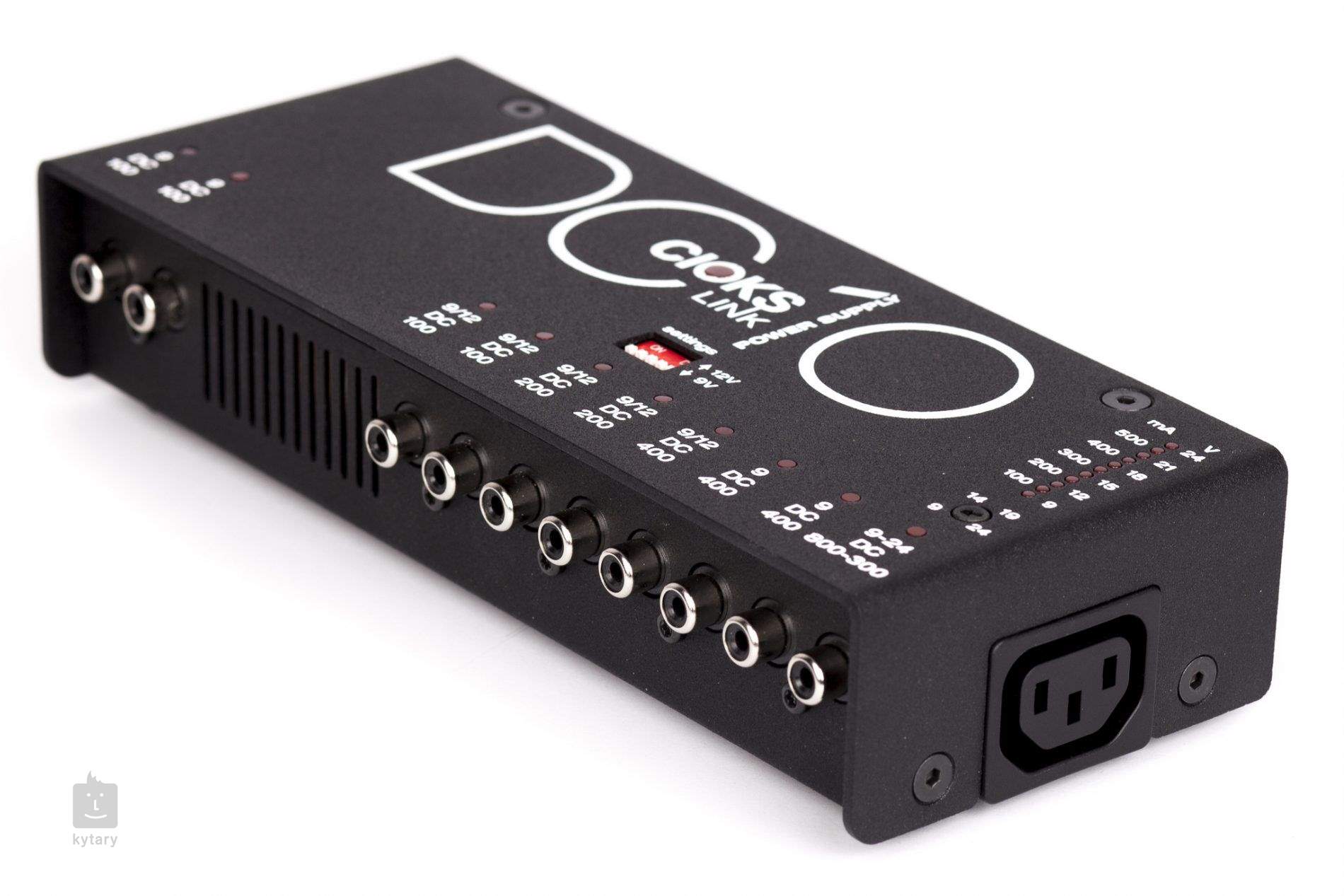 This power supply for effect pedals delivers 2800mA of the cleanest power from its 10 isolated outlets with 9 and 12V available. Outlet 10 is adjustable from 9V to 24V and anything in between, so it can power pedals with non standard voltages. Due to its very high 800mA current capability at 9V or 12V, you can also power bigger units. The mA-meter allows you to measure all your pedals, current draw so you can use the correct outlet for each unit without "wasting" power. The Link functionality allows you to connect to another Cioks power supply, should you need more outlets, even more power or some AC.