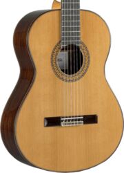 The all-solid CORDOBA Luthier C12 SP (european Spruce top, Rosewood/flamed Maple back/sides, Ebony fretboard) is a high-end and modern guitar. Available with either a solid Canadian cedar or European spruce top with Indian rosewood back and sides, the C12's lattice bracing and raised fingerboard are elements that make this model truly stand out from the rest. The delicately braced top provides rich tones with a lively presence and the raised fingerboard makes accessing upper frets a breeze. The C12 is a treasure to last a lifetime with stunning decorative elements such as its flamed maple center wedge on the back, matching maple binding, and hand-inlaid 1920s-inspired pearloid rosette. Comes inside a hardshell Córdoba humidified archtop case.
