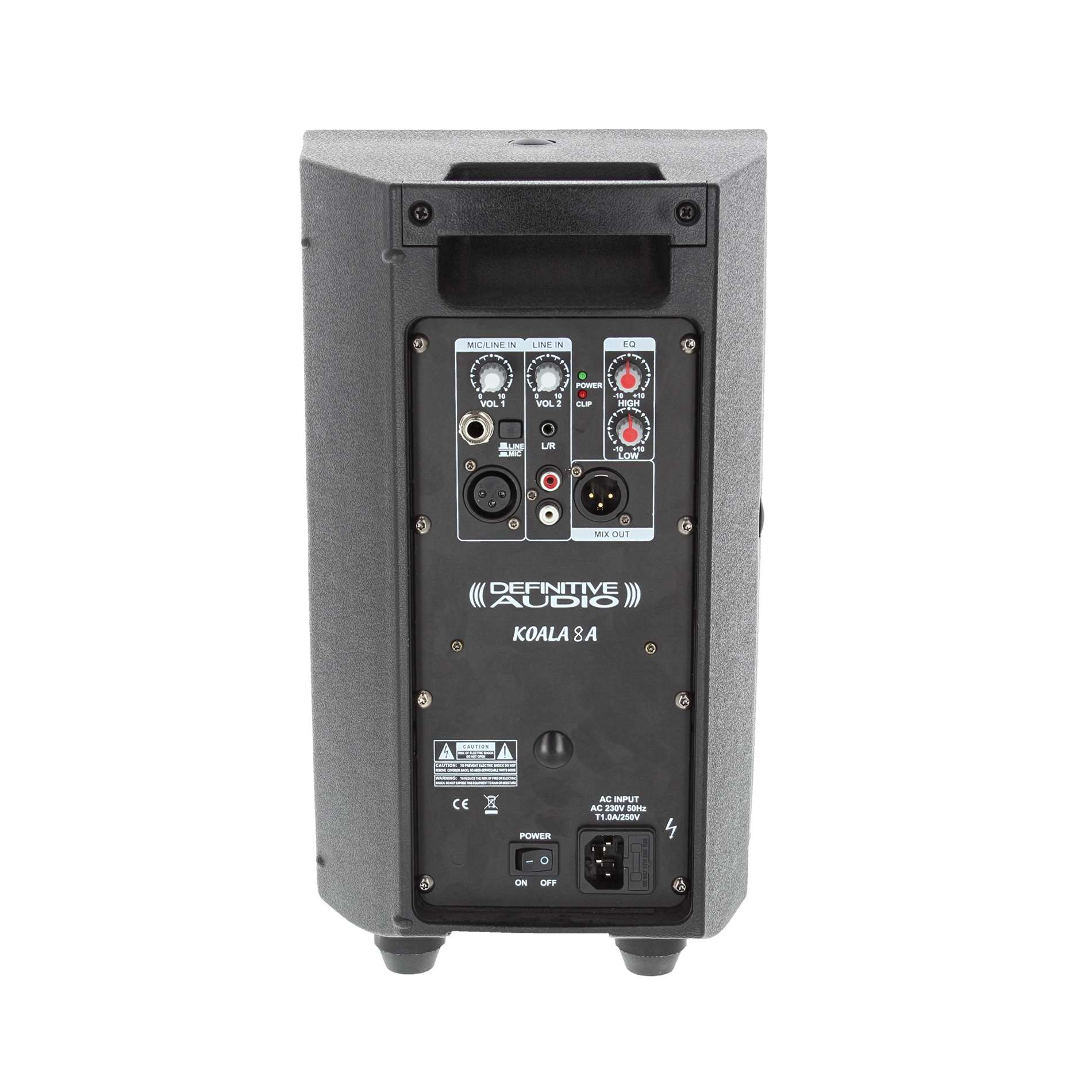 DEFINITIVE AUDIO introduces the KOALA active speaker series. Powerful, light, powerful, with an ultra modern design, this new range of speakers will offer an ideal compromise between sound reproduction, excellent reliability, versatility and perfect mobility. The KOALA series is equipped with very high quality speakers, driven by a bi-amplified system of Class D for bass and AB for treble. The series consists of five different models, 6 ", 8", 10 ", 12" and 15 ", ideal for all types of applications, whether DJ, live, conference, fixed installations or The KOALA series will be perfect and will certainly meet all your requirements.Please note that all three versions can be used in the Scene Return position.