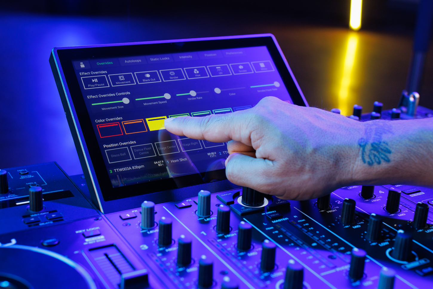 El sistema Engine Lighting integrado en Denon DJ PRIME 4+ te permite gestionar tus luces sin necesidad de un controlador DMX externo. Puede ajustar los colores, activar efectos como estroboscópicos o chases, e incluso controlar máquinas de humo o bengalas. Todo se controla desde la pantalla de PRIME 4+. Es fácil de configurar, rápido de usar y te permite tener un espectáculo de luces coherente con tu decorado, sin tener que hacer malabarismos con otro equipo.