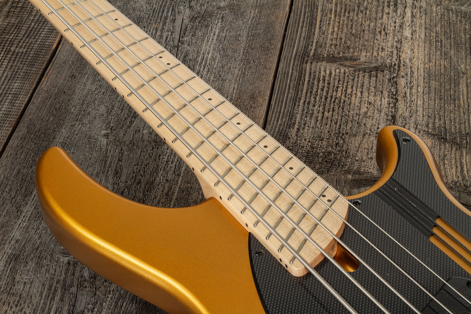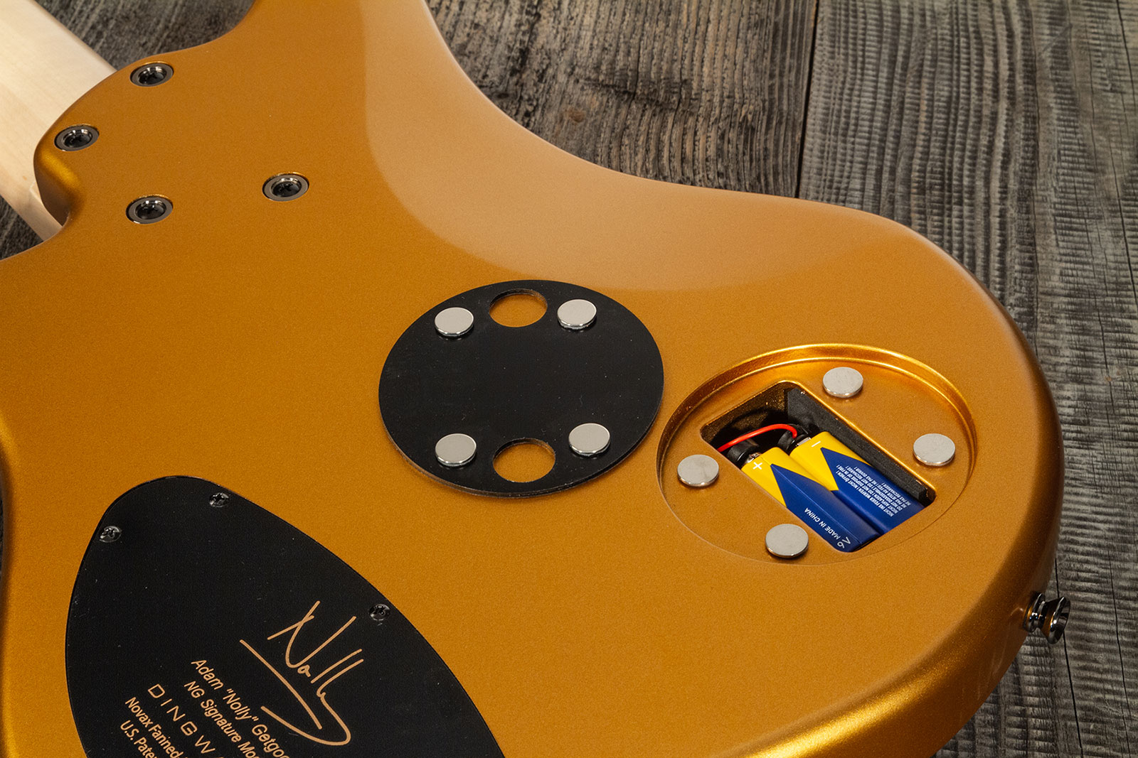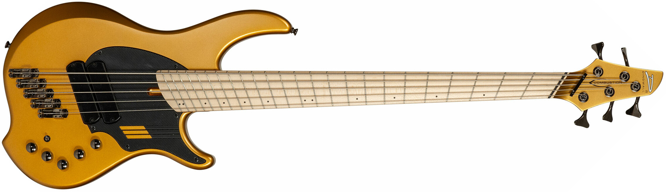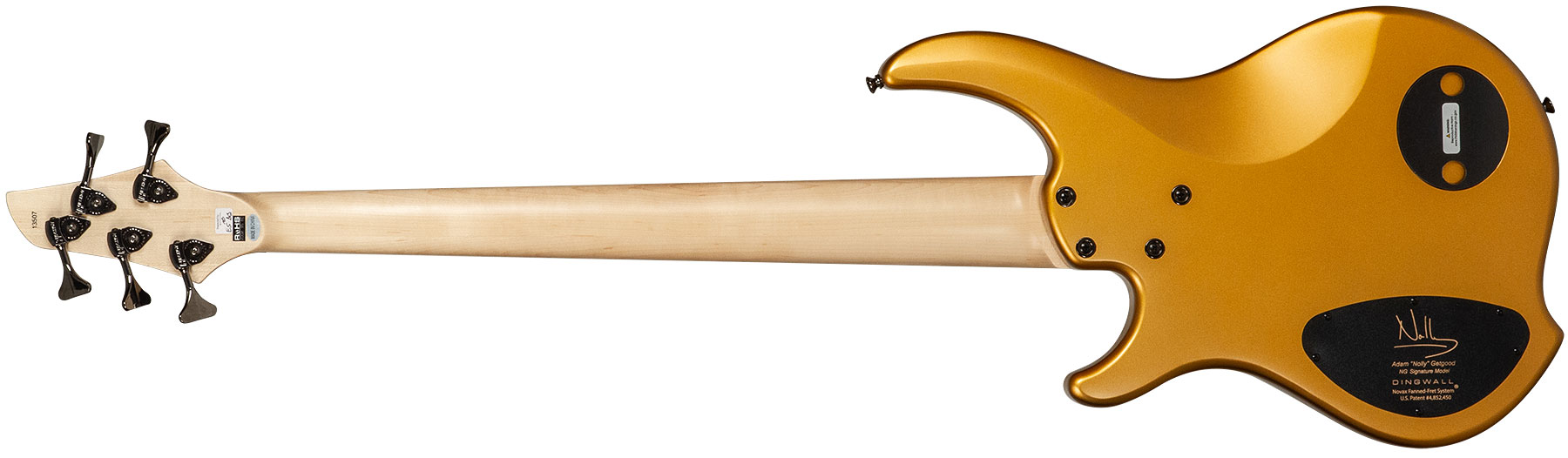 Based on the Dingwall Combustion model, the DINGWALL Adam "Nolly" Getgood NG2 5 2-Pickups (MN, Gold Matte) is the signature solid body electric 5-string bass of Periphery's bassist, featuring active/passive Darkglass Tone Capsule electronics, Dingwall pickup sweetspot-placed according to Nolly's advice, Alder body, high stability 5-pieces Maple neck, 24 fan frettes multi-scale fingerboard.