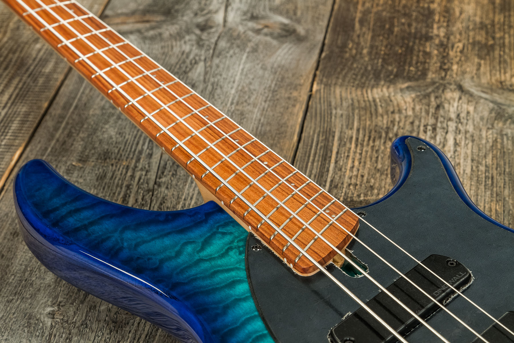 DINGWALL Combustion 4 2-Pickups (PF, Whalepool Burst) is a 4-string solid body electric bass with active/passive electronics, swamp Ash body, high stability 5-pieces Maple neck, 24 fan frettes multi-scale fingerboard, Dingwall FD3-N pickups with Neodynium magnets, EMG preamp with 3-band EQ, Hipshot bridge en tuners.