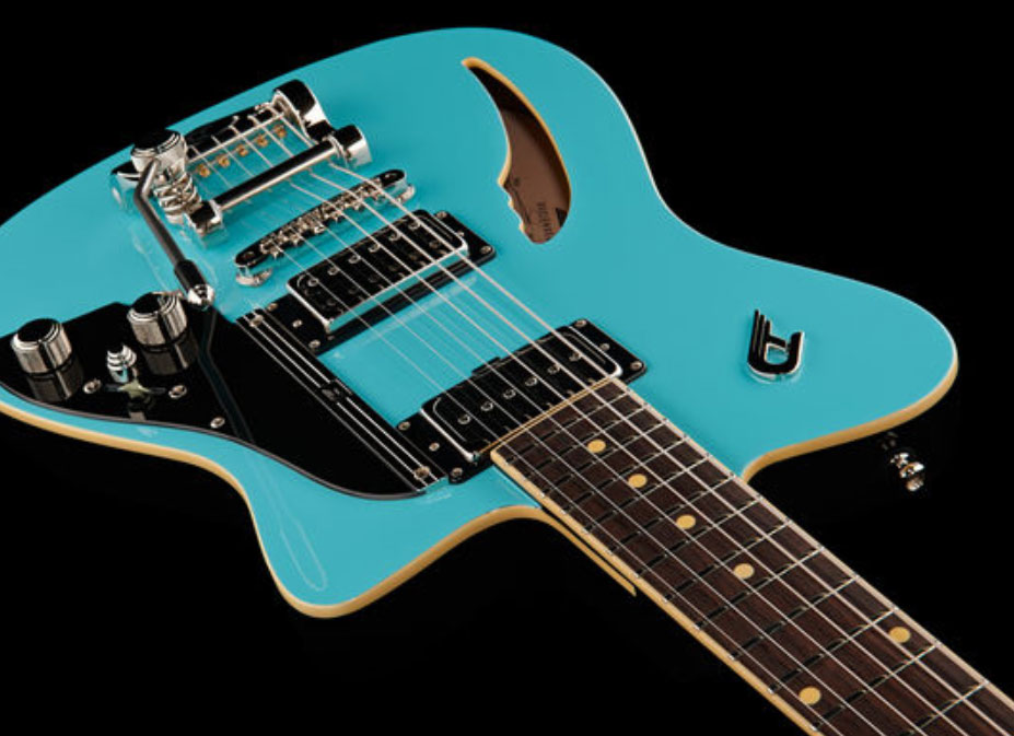 With an hybrid Gibson/Gretsch/Fender temper and amazing built quality, DUESENBERG Caribou (NBL) solid body electric guitar (Alder with tonal chambers and f-hole) finds its place on a quite saturated market.