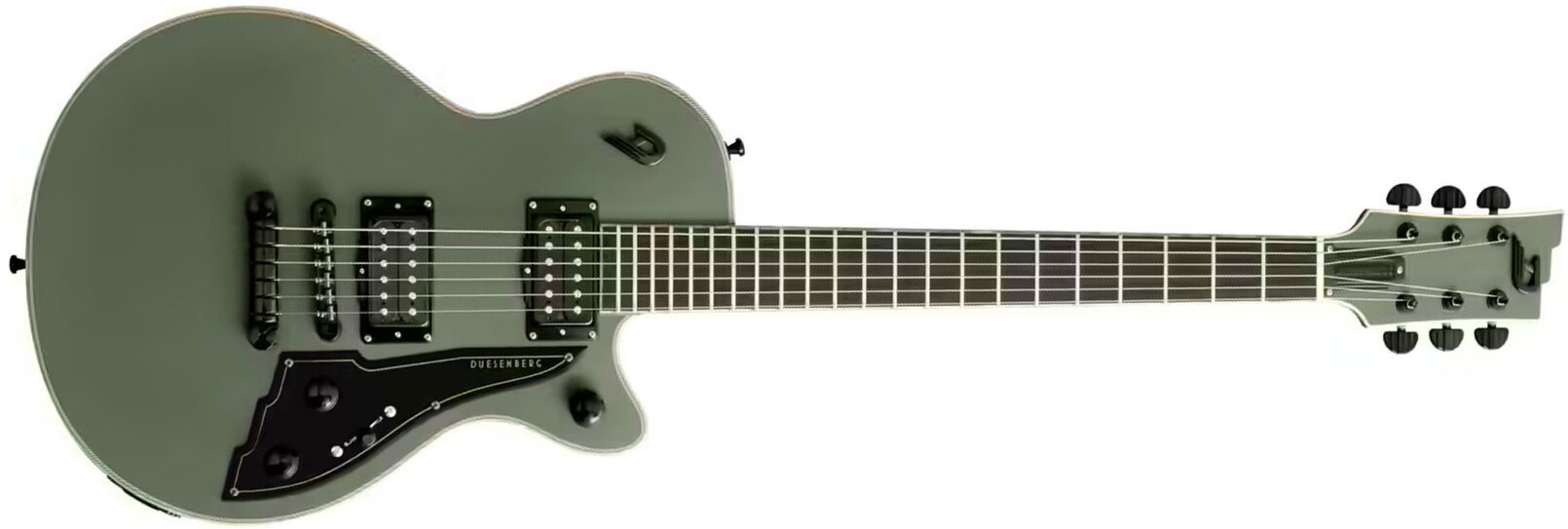 Mainly composed of Mahogany and Ebony, the DUESENBERG Fantom Series A (Matte Olive) solid body electric guitar is a mighty rock-machine with some unique twists.