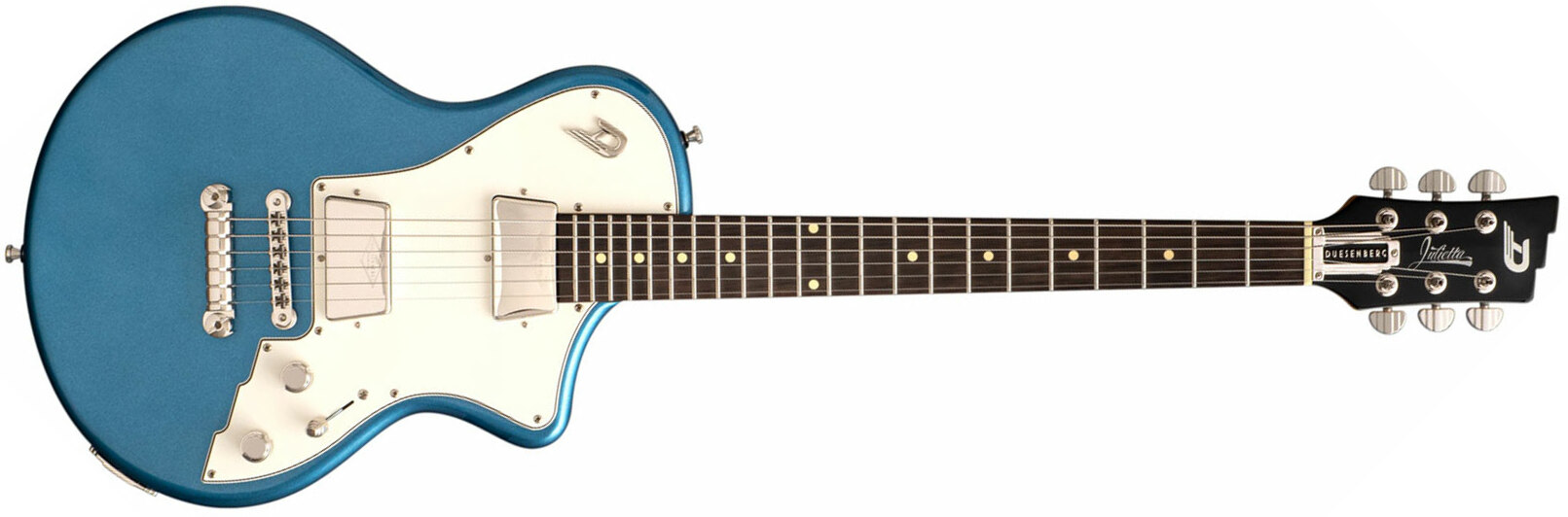 With an hybrid Gibson/Gretsch/Fender temper and amazing built quality, DUESENBERG Julietta (Catalina Blue) solid body electric guitar (solid Alder) is a serious contender on a quite saturated market.