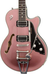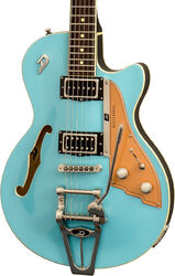 - Semi-hollow body electric guitar with sustain block and f-hole