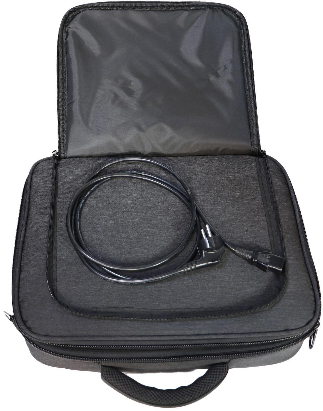 Inside the bag, two Velcro straps secure your amplifier during transport. The bag is equipped with a padded shoulder strap for comfortable transport over long distances, as well as a rigid carrying handle.