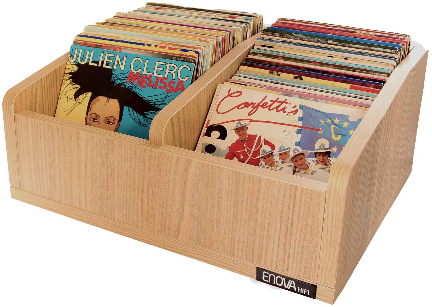 Wooden cabinet for 45 rpm vinyl records from Enova hifi.