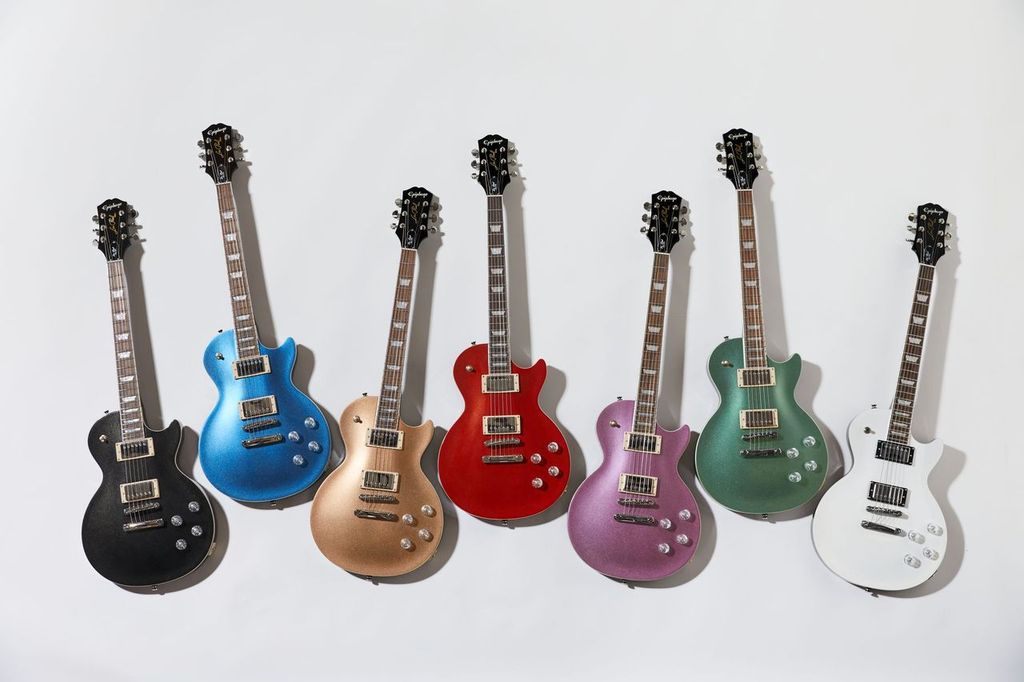 - guitars modeled after Gibson shapes will get the classic Epiphone Kalamazoo headstock.