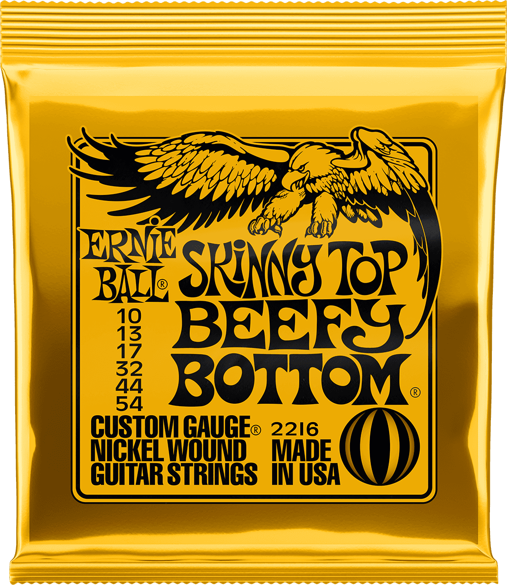 ERNIE BALL 2216 Skinny Top Beeefy Bottom Slinky Nickel Wound Electric Guitar Strings 10-54 6-string set combine the lighter playability of the Regular