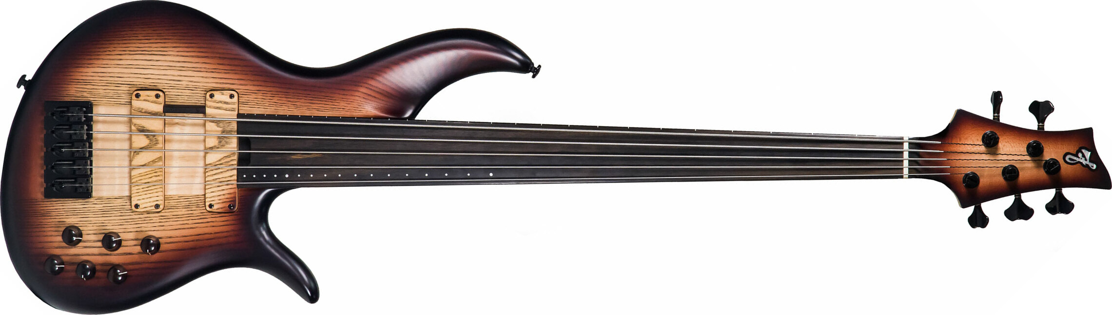 F bass BNF5 Fretless 5 String Ebony Fretboard - brown burst satin