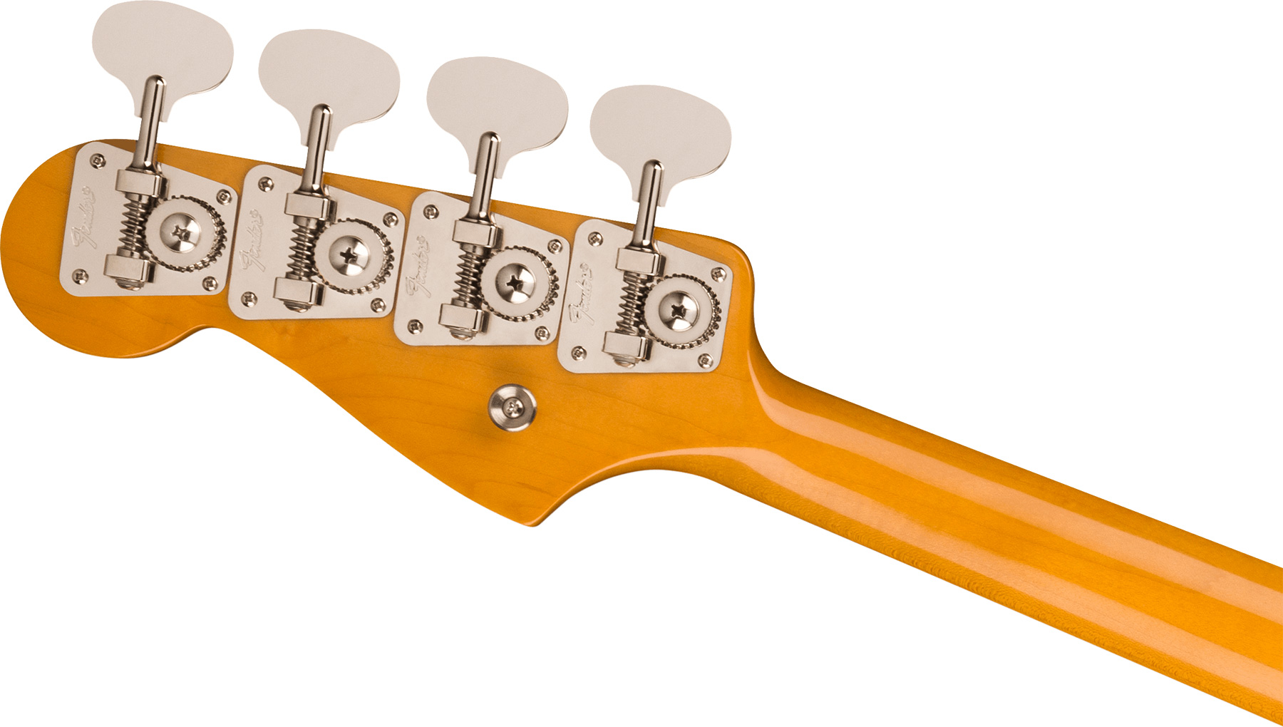 The American Vintage II 1966 Jazz Bass features a comfortable “U” shape hard rock maple neck, and it plays like a dream with a 7.25” radius round-lam rosewood fingerboard and vintage tall frets. Characteristic of production in 1966, this J-Bass® is offered with white neck binding, pearl dots, two volume controls with master tone, matching painted headstock and 4-ply tortoiseshell pickguard. The 4-saddle bridge with threaded saddles, vintage-style “lollipop” tuners and Pure Vintage ‘66 Jazz Bass pickups deliver classic thump and style.