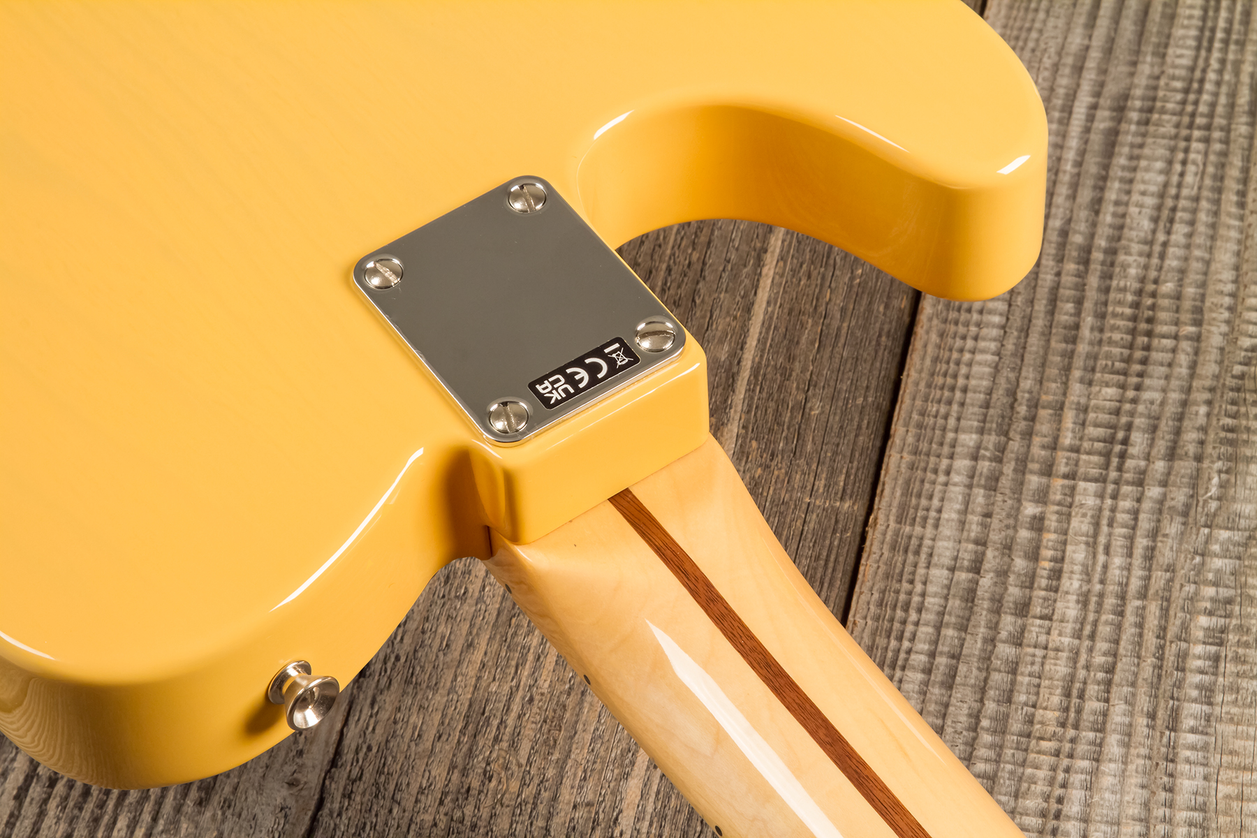 The FENDER Limited Edition Made in Japan Traditional 1951 Nocaster (5405202350) solid body electric guitar features a gloss finish Ash body, a classic Butterscotch Blonde finish and black pickguard. Custom Shop '51 Nocaster Tele® pickups deliver a sound true to their heritage with all the twang and shimmer of the original Nocaster® guitar.