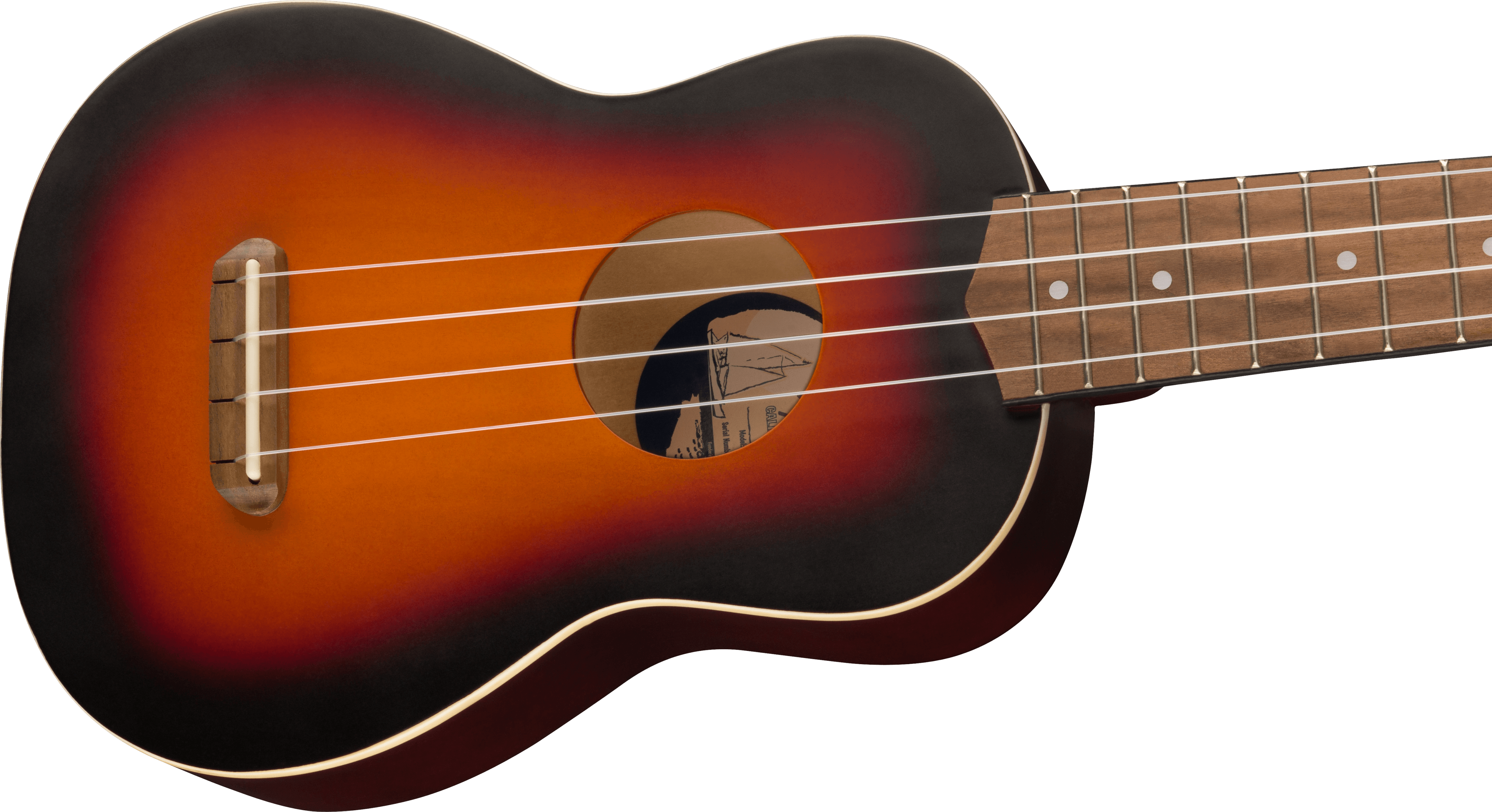 Inspired by the entertaining sights and unique, carefree spirit of Venice, California, Fender created a soprano ukulele that captures its vibe—the FENDER Califrnia Coast Venice Soprano Uke .