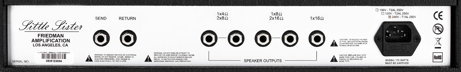 The Little Sister features all the beautiful finishing and solid construction that you would expect from a Friedman amplifier. Designed to take pedals and loves boosts, OD’s, phasers, flangers, tremolos and wahs, while the ultra-transparent series effects loop handles your time-based effects pedals and rack units.