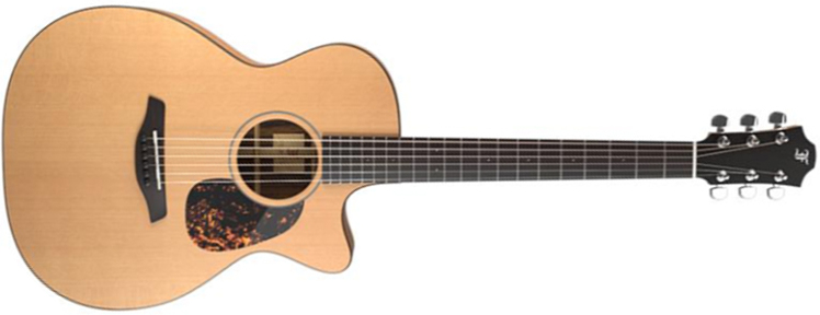 The Blue Series is Furch's most affordable solid-wood instrument. FURCH Blue OMc-CM LR Baggs EAS-VTC steel string acoustic/electric guitar is a Orchestra Model with cutaway made from solid AA western Red Cedar top, solid AA african Mahogany back/sides and Ebony fingerboard.