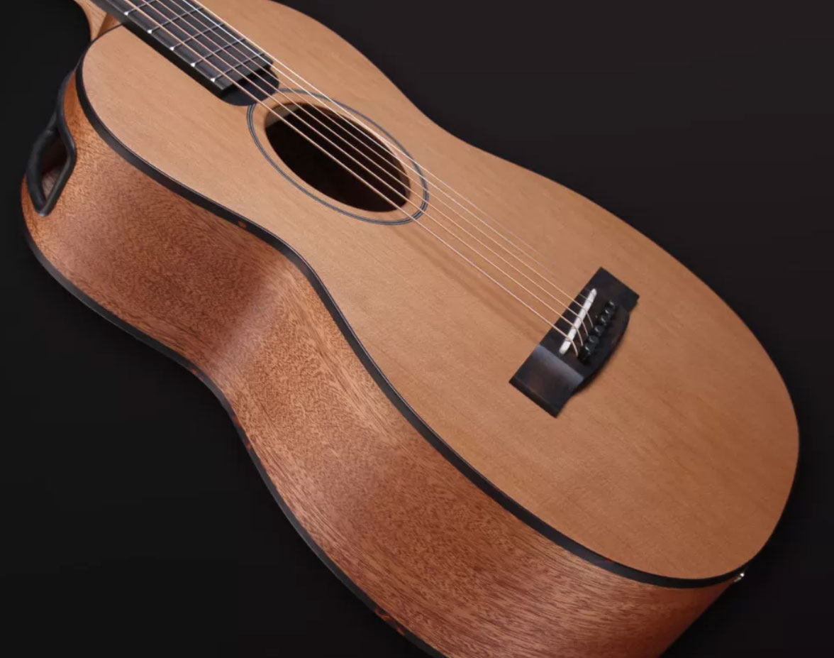 The FURCH Travel Little Jane LJ10-CM LRB1 Left Handed is a unique travel acoustic/electric guitar with solid tonewoods (Cedar, Mahogany, Ebony fingerboard) and and LR Baggs LRB1 preamp, designed to give you the freedom to take your instrument with you wherever you go. Our proprietary assembly system allows the guitar to be easily and quickly assembled into a full-fledged instrument. Likewise, the instrument can be simply disassembled into a compact form and stored in a travel bag with the size of a regular backpack.