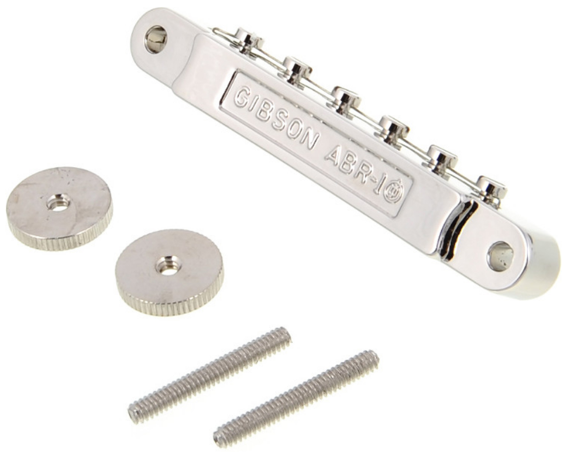 The ABR-1 Tune-o-matic bridge was the brainchild of legendary Gibson president Ted McCarty in 1954, setting a standard for simplicity and functionality that has never been bettered. The GIBSON ABR-1 Tune-O-Matic Bridge (PBBR-015) is slotted directly into the body of the guitar using a separate stud and thumbwheel, providing a firm seating for the strings and allowing players the ability to adjust and fine tune intonation and string height in a matter of minutes.