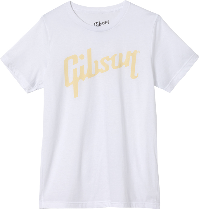 GIBSON Distressed Gibson Tee Medium White (GA-LC-WHTTMD) featuring the Gibson headstock logo first introduced in the late 1940s.