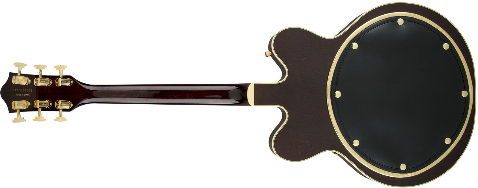 A pair of TV Jones® Classic pickups responds to every pick stroke or strum with refined, articulate tone. Traditional Gretsch controls - including per-pickup volume controls, master volume, a three-way tone switch - allow you to create countless tonal variations for a personalized tone. The new Gretsch "Squeezebox" capacitors deliver silky vintage high end. The standard "U"-shaped maple neck bears a 12"-radius ebony fingerboard with 22 frets and zero-fret for a memorable playing experience that works with any style. The sealed body with simulated F-holes minimizes feedback while providing for authentically vintage tone. A pinned "rocking" bar bridge reacts in concert with the Bigsby B6GVT vibrato tailpiece for stable tuning while the bone nut lets the strings slide freely without binding in the slots.
