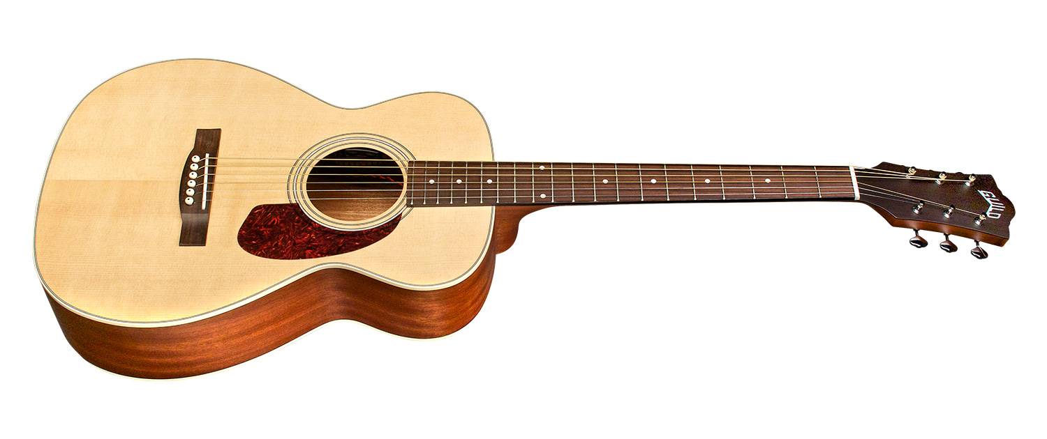 With a 24 3/4" scale length and 1 11/16" nut width on a vintage shaped Guild neck, this concert size guitar is a joy to play.