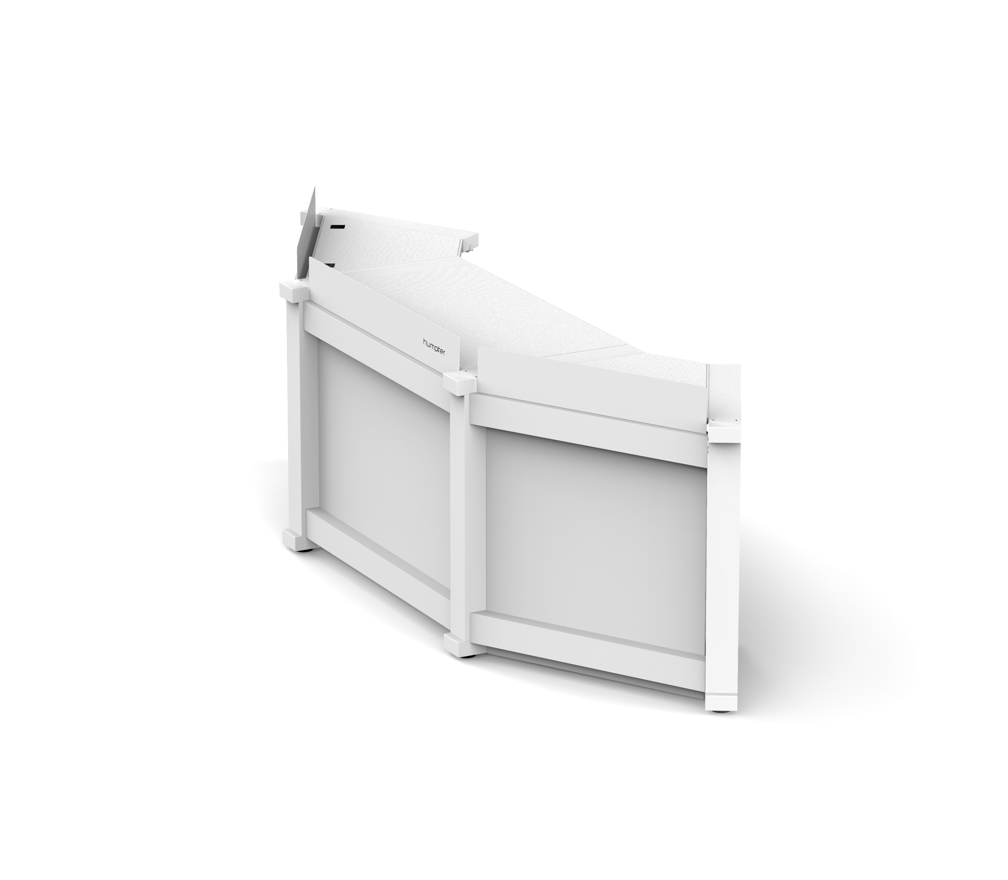 Professional, high-end, mobile DJ table with a modular accessory system.