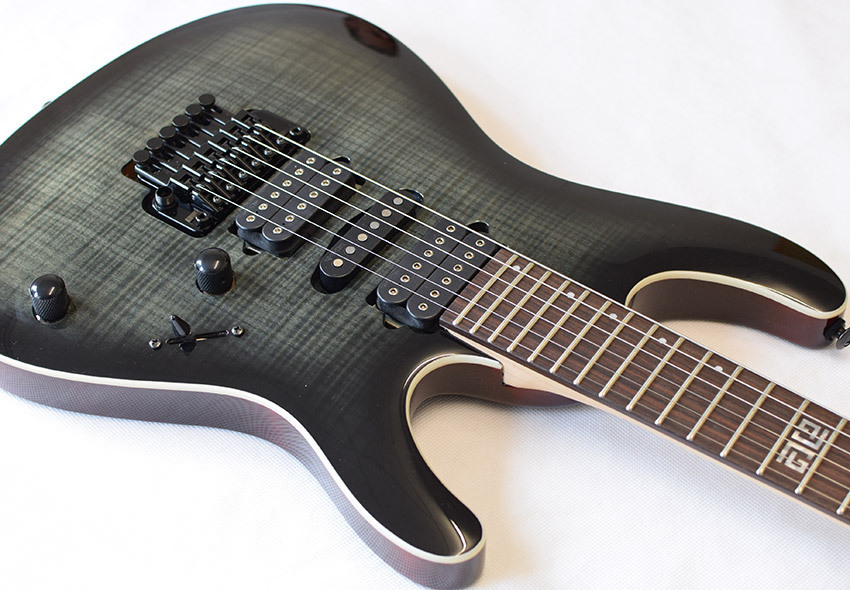 With an Alder body, flame Maple top, Maple set-neck, Panga-Panga fingerboard and Dimarzio Loureiro custom pickups), the IBANEZ Premium KIKO10BP TGB solid body electric combines nice aesthetics, versatile sounds and great playability.