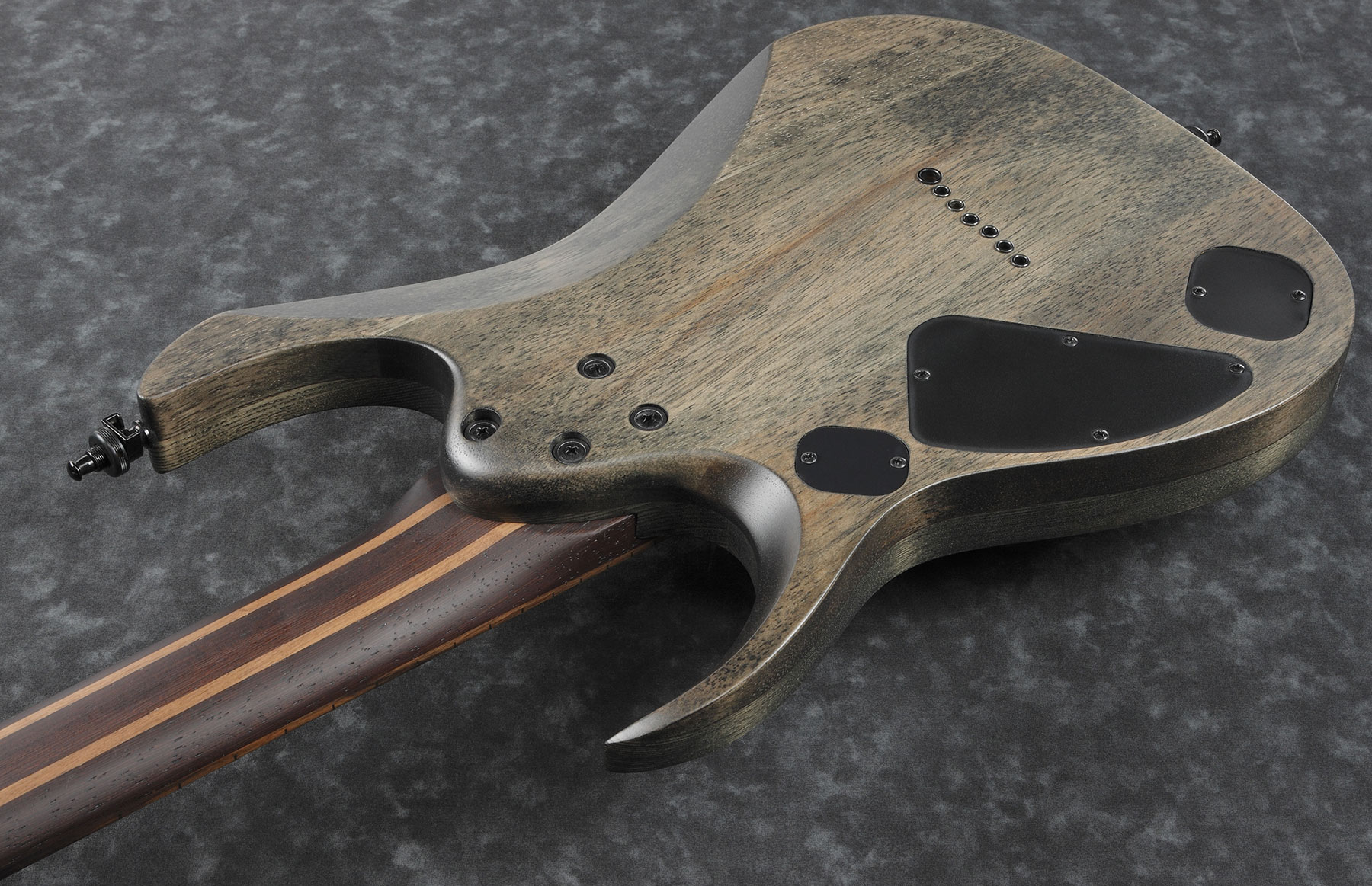 Merging various influences with Ash/Nyatoh body, Panga-Panga/Walnut bolt-on neck, 24 frets Macassar Ebony fingerboard, Bare Knuckle Aftermath pickups (coil-splitable) and Ibanez Mono-rail fixed bridge, the IBANEZ Axion Label RGD71ALPA CKF 7-string / baritone solid body electric offers huge sounds, great playability and magnificent aesthetics that will seduce modern Metal players.