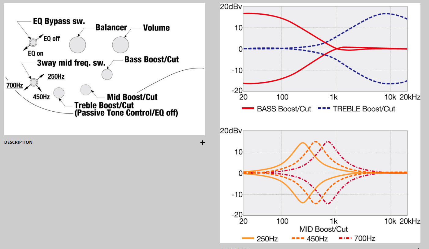 - Ibanez Custom Electronics 3-band EQ w/ EQ bypass switch (passive tone control on treble pot)