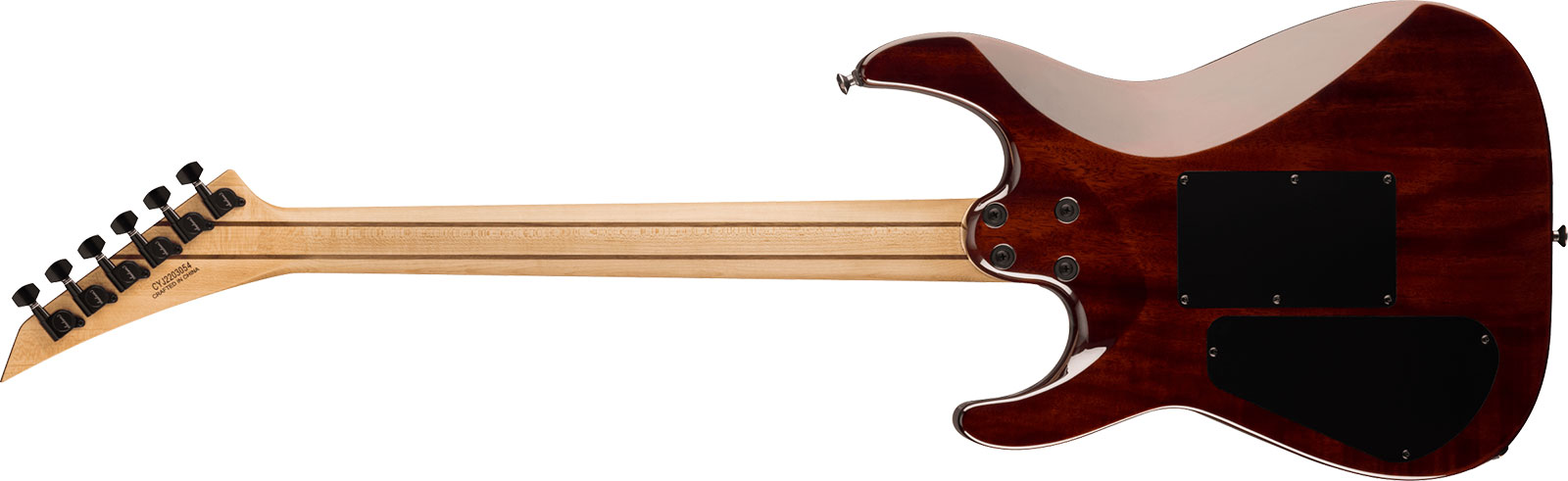 A modern metal machine, the JACKSON Pro Plus Series Dinky DKAQ (2914105585) solid body electric guitar features an Okoume body and a graphite-reinforced bolt-on maple neck with sculpted shredder’s cut heel for easier access to the upper frets.