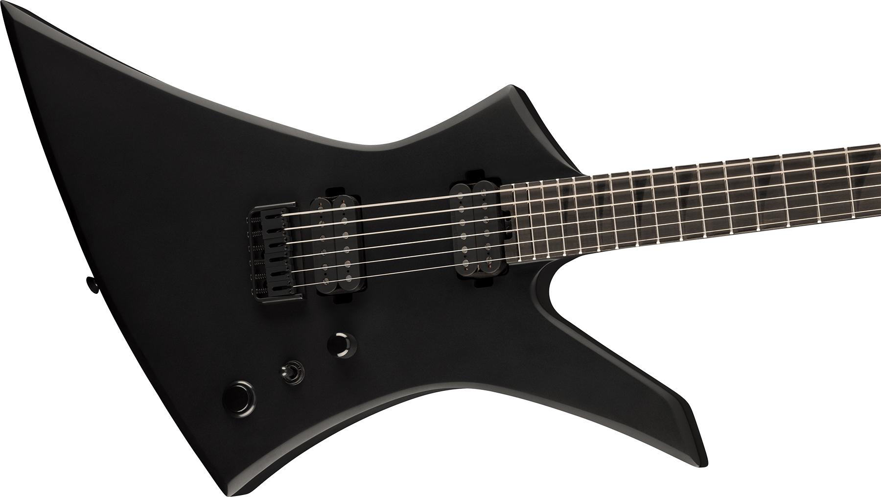 The thundering Pro Plus XT Kelly™ KE HT6 Baritone comes in Satin Black with black hardware and a reverse Jackson pointy headstock.