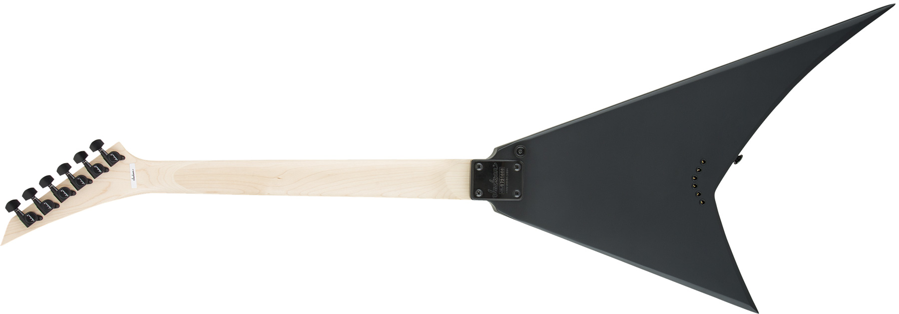 The JS Series Rhoads JS32T has a poplar body and a bolt-on maple speed neck with graphite reinforcement and scarf joint for rock-solid stability. Hosting 24 jumbo frets and pearloid sharkfin inlays, the 12”-16” compound radius fully bound amaranth fingerboard creates the ideal playing surface for fat riffs and easy chording near the black plastic nut while gradually flattening in the upper registers for lightning-quick solos and wide bends without fear of fretting out.