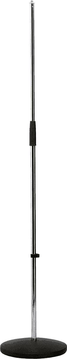 K&M 260-1C Microphone stand - chrome. Heavy cast-iron round base, with anti-vibration rubber insert for noise filtration, plastic clutch-style height-adjustment system.