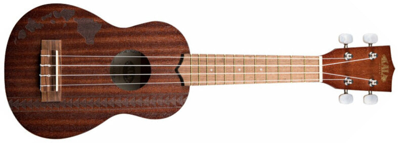 Adorned with exotic laser etched graphics, the KALA KA-15S-H2 Satin Mahogany Soprano W/ Hawaiian Islands & Tattoo acoustic Ukulele is made of a laminated Mahogany (top, back and sides).