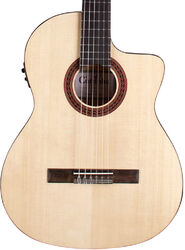 With its included gig bag, LAG Tramontane Travel Escapade RCE Nylon is a small body / short-scale acoustic/electric classical guitar featuring solid Red Cedar top, Khaya back/sides/neck, Brownwood fretboard and Micro-Lâg system.