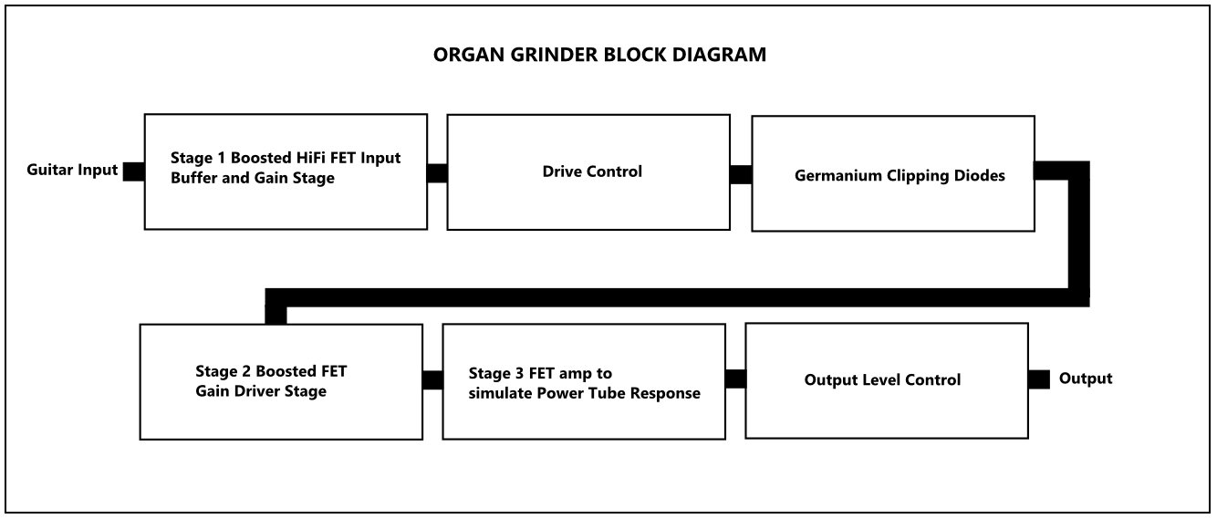 Like all Lounsberry Pedals it sounds and plays more like an amp than a pedal, bringing to mind the tube power amp section of an overdriven Leslie cabinet. As it easily handles the low notes, the Organ Grinder also sounds awesome with bass guitar. Itt is the ultimate shredding device for the keyboardist who wants to rock.
