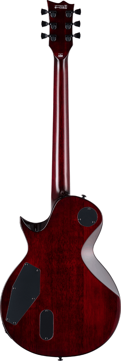 This newly-updated EC-1000 offers a luxurious, upscale look with its quilted maple top, See Thru Black Cherry finish, and special aesthetic touches like multi-ply body and headstock binding, with sleek black hardware complementing the overall design. You also get set-thru construction at 24.75” scale with a smooth heel joint, pairing a mahogany body and three-piece mahogany neck. The EC-1000 Fluence also offers the modern amenities for today’s music performance styles, including a TonePros locking TOM bridge and tailpiece, LTD locking tuners, a Macassar ebony fingerboard with ESP flag inlays, and 24 extra-jumbo stainless steel frets. Its sound is powered by a set of direct-mount Fishman Fluence Modern Humbucker active pickups (ceramic in the bridge and alnico in the neck), with push-pull control to select voicings and black nickel covers to match this guitar’s outstanding aesthetics. Each pickup offers two voices. With the ceramic bridge pickup, Voice 1 is the ultimate high-output ceramic humbucker bridge pickup tone… crisp, searing crunch, tight bass with no mud, and a growl. Voice 2 delivers modern passive attack performance that has superbly organic distortion characteristics with outstanding dynamics and response. The alnico neck pickup’s Voice 1 is Fishman’s modern active high-output tone, offering the ideal active alnico sound: full, round, and boosted, but with unprecedented articulation and dynamics. Voice 2 gives you the crisp, clean and fluid neck humbucker tone you’ve always wanted.
