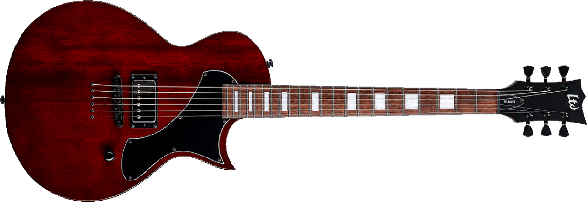 The "FT" in LTD EC-201FT stands for “flat top”, and that’s what this is: a great-looking, streamlined EC-style guitar that’s built to rock hard. It offers a mahogany body with traditional set-neck construction at 24.75” scale, along with a thin u-shaped three-piece mahogany neck. The EC-201FT’s roasted jatoba fingerboard features black binding, pearloid block inlays, and 22 extra-jumbo frets. A multi-ply black pickguard adds to the look of this great, value-packed guitar. Components on this guitar include a TOM-style bridge with string thru body, LTD tuners, and a single hot, punchy ESP LH-150B humbucking pickup that can be coil-spill via a push-pull control on the master volume.
