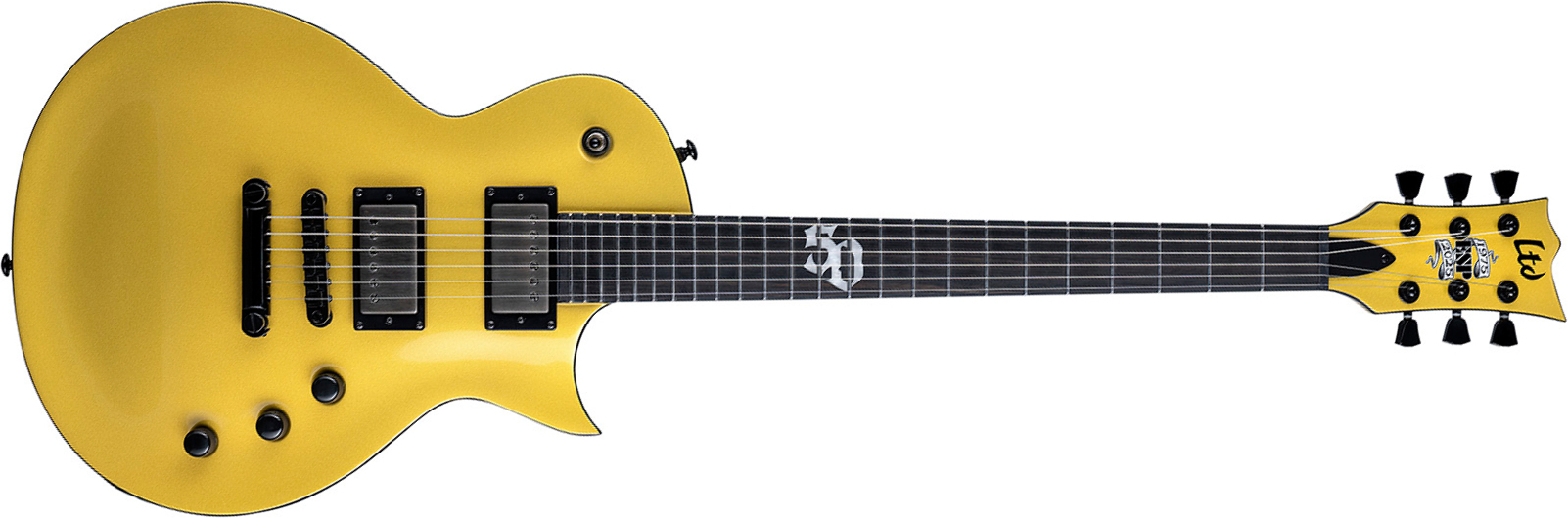 To commemorate the 50th anniversary of ESP Guitars, we’re proud to offer the limited-edition LTD EC-2025 50th Anniversary Limited in production to just 500 pieces available worldwide, the EC-2025 is being offered in Metallic Gold finish with black hardware and black single-ply binding on the body, neck, and headstock, appropriate for our golden anniversary celebration. It features a special “50” graphic fingerboard inlay at frets 11-13, as well as a 50th Anniversary logo on the guitar’s headstock. Built with set-thru construction at 24.75” scale, the guitar employs a mahogany body with maple cap, a three-piece mahogany neck, and a Macassar ebony fingerboard with 24 extra-jumbo stainless steel frets. Features on the EC-2025 include LTD locking tuners, a TonePros locking bridge and tailpiece, and a set of outstanding Seymour Duncan humbucker pickups that includes the ESP-exclusive Custom 14 in the bridge, and the iconic APH-1N in the neck. Coil splitting is accessible with a push-pull control. Includes ESP hardshell form-fit case. Only available while supplies last.