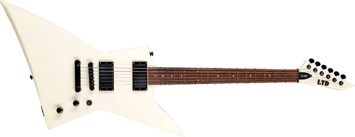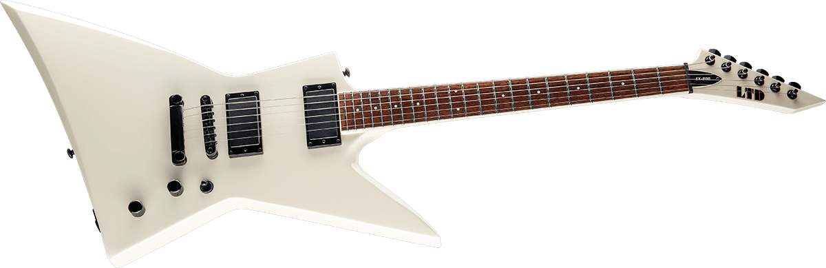 The LTD EX-200 solid body electric guitar is for those about to Heavy Rock ! This model, now built with set-neck construction for smooth access to the highest frets, is available in Black and Black Cherry Metallic finishes, and offers ESP Designed humbucker pickups and TOM-style bridge and tailpiece. This guitar offers aggressive styling in its mahogany body, and includes a three-piece maple neck with roasted jatoba fingerboard and 22 extra-jumbo frets.