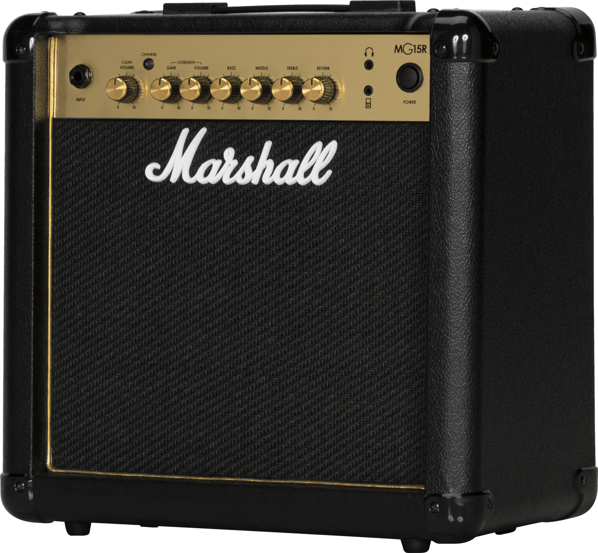 MARSHALL MG15GR (15 watts, 1x8") is a solid-state combo amplifier for electric guitar perfect for practice. MG15GR features separate clean and drive channels with individual volumes and common 3-band EQ. You also benefit from a nice reverb, MP3/line input to jam along your favorite tunes, and a headphones outputt with speaker emulation for silent playing.