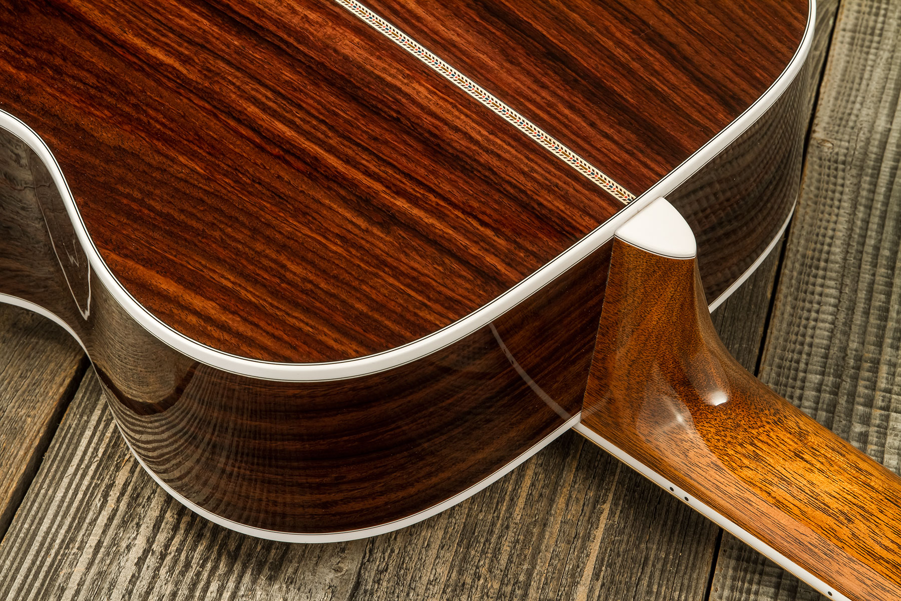 It features Solid Sitka Spruce top and bracing, solid east indian Rosewood back/sides, genuine solid Mahogany neck with Modified Low Oval and High Performance Taper profile, Ebony fretboard.