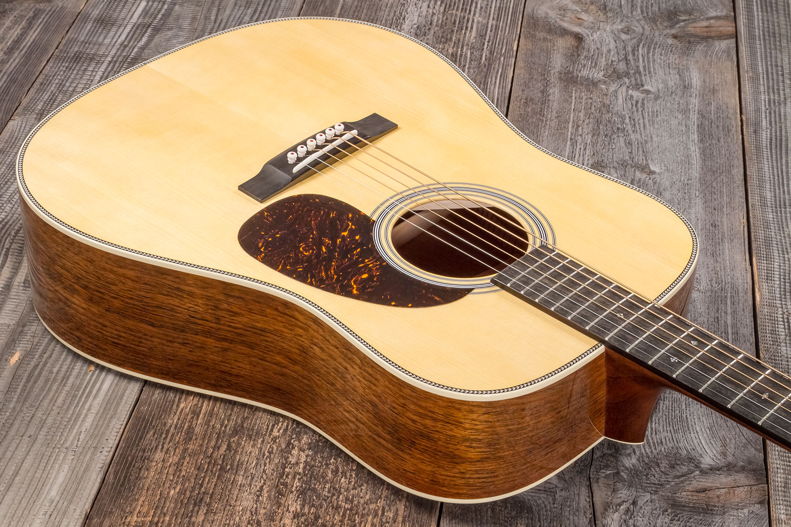 Solid Adirondack Spruce top, solid Guatemalan Rosewood back/sides, genuine solid Mahogany neck with Modified Low Oval and High Performance Taper profile, Ebony fretboard.