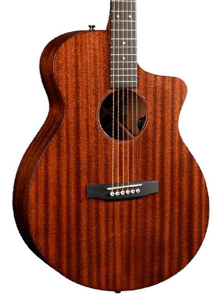 With a gorgeous glossed Sitka spruce top and sapele back and sides, the solid wood Grand Performance with cutaway MARTIN Road Series GPC-11E is a great sounding acoustic/electric guitar at an affordable price.